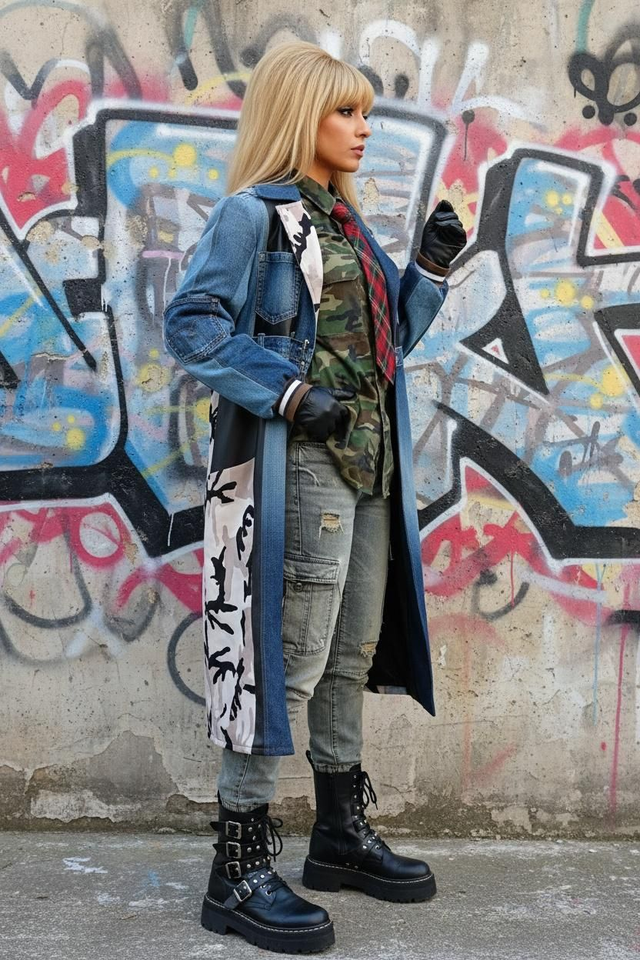 Dove il vibrante street style unisex incontra l'anima punk nascono look che sfidano le convenzioni. Tessuti natuali e denim rigenerato: la mia palette per dipingere un futuro più verde nel mondo della moda. Tartan ribelle con animalier e mimetica audace: l'essenza di uno stile che non passa inosservato.